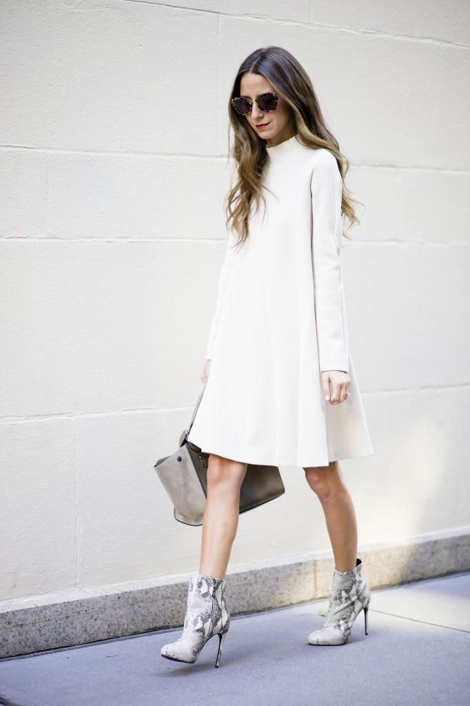 Платье-футляр – это настоящий эталон классики, красиво облегающий женский силуэт. Как правило, его длина достигает колен, но допустим вариант на пару сантиметров выше или ниже. Согласно модным тенденциям идеальным спутником подобного платья станут строгие лодочки на шпильке или ботильоны на низком ходу.