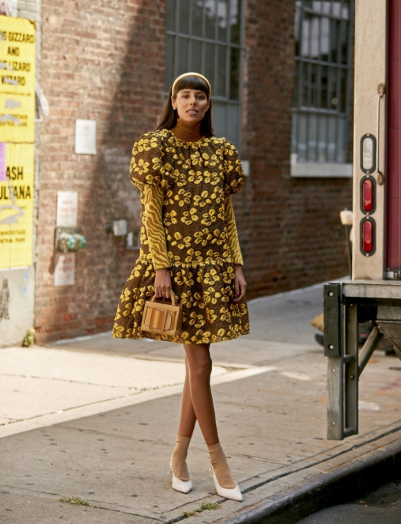 Офисное платье, украшенное объемными рукавами, непременно станет фаворитом рабочего гардероба в сезоне 2021-2022. Подобная модель может иметь приталенный крой и расклешенный низ, наилучшим образом ложась по фигуре.