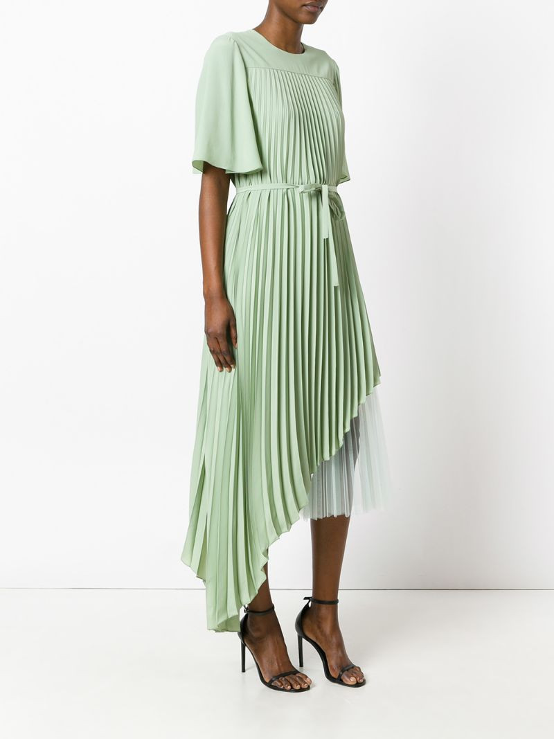 Знаменитые модные дома в сезоне 2021-2022 разработали модели деловых платьев, сопровождаемых мягкими воланами в зоне декольте и плиссированной юбкой. Выбирая подобный фасон, стоит следовать таким рекомендациям: